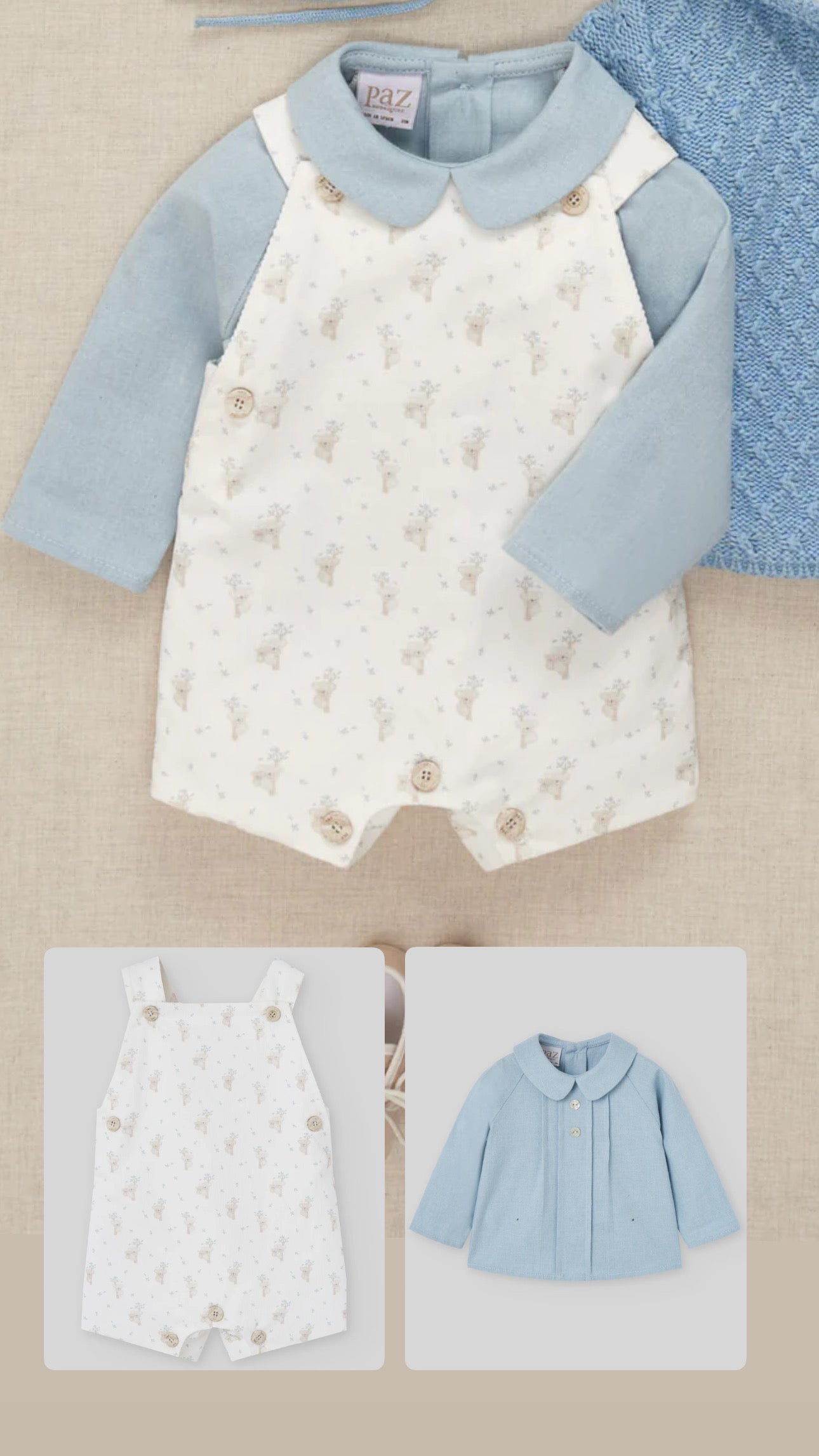 Hermoso peto para niño con print de koala y camisa en color azul, muy combinable y divino.